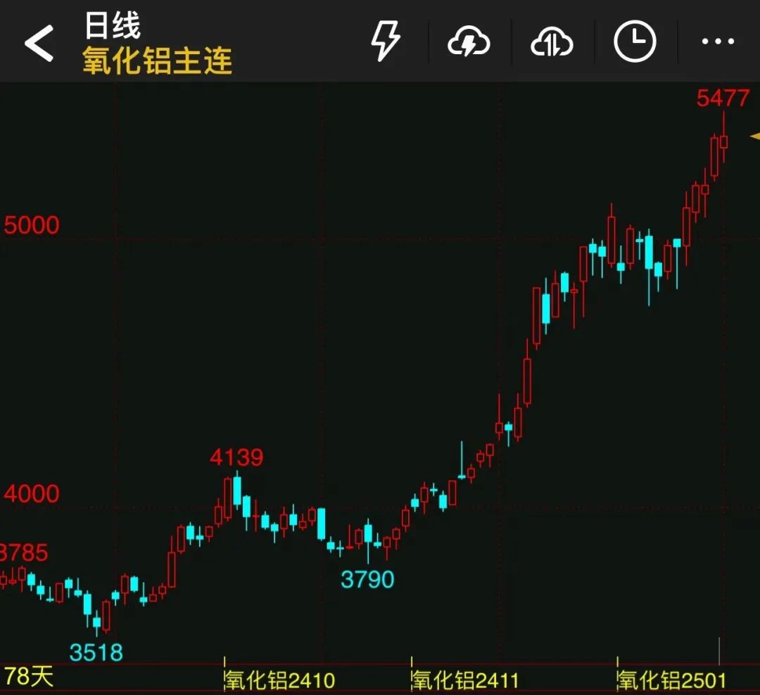 11月11日,氧化铝期货主力合约2501再度报涨,盘中最高录得5477元/吨,续刷上市以来新高。