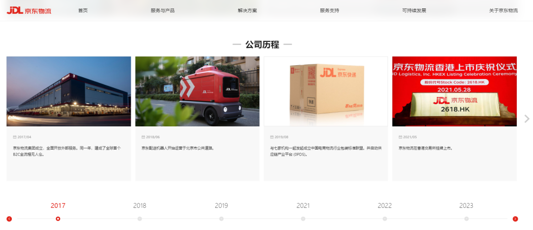 官网显示,京东(JD)集团自2007年开始自建物流,2017年4月正式成立京东物流(HK2618)集团,2021年5月京东物流(HK2618)在港交所上市。