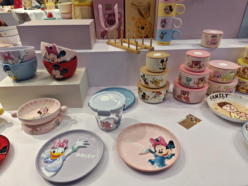 为了更好地适应消费者喜好,也为了把日用百货做出更高附加值,许多厂商选择引入IP。“我们现在把水杯做得比较个性化,在很多杯型上都做了IP延伸。”侯佳伟表示。陶瓷品牌海鸿陶瓷也以迪士尼旗下经典IP米奇米妮为基础,开发设计了陶瓷餐具、水杯等产品。