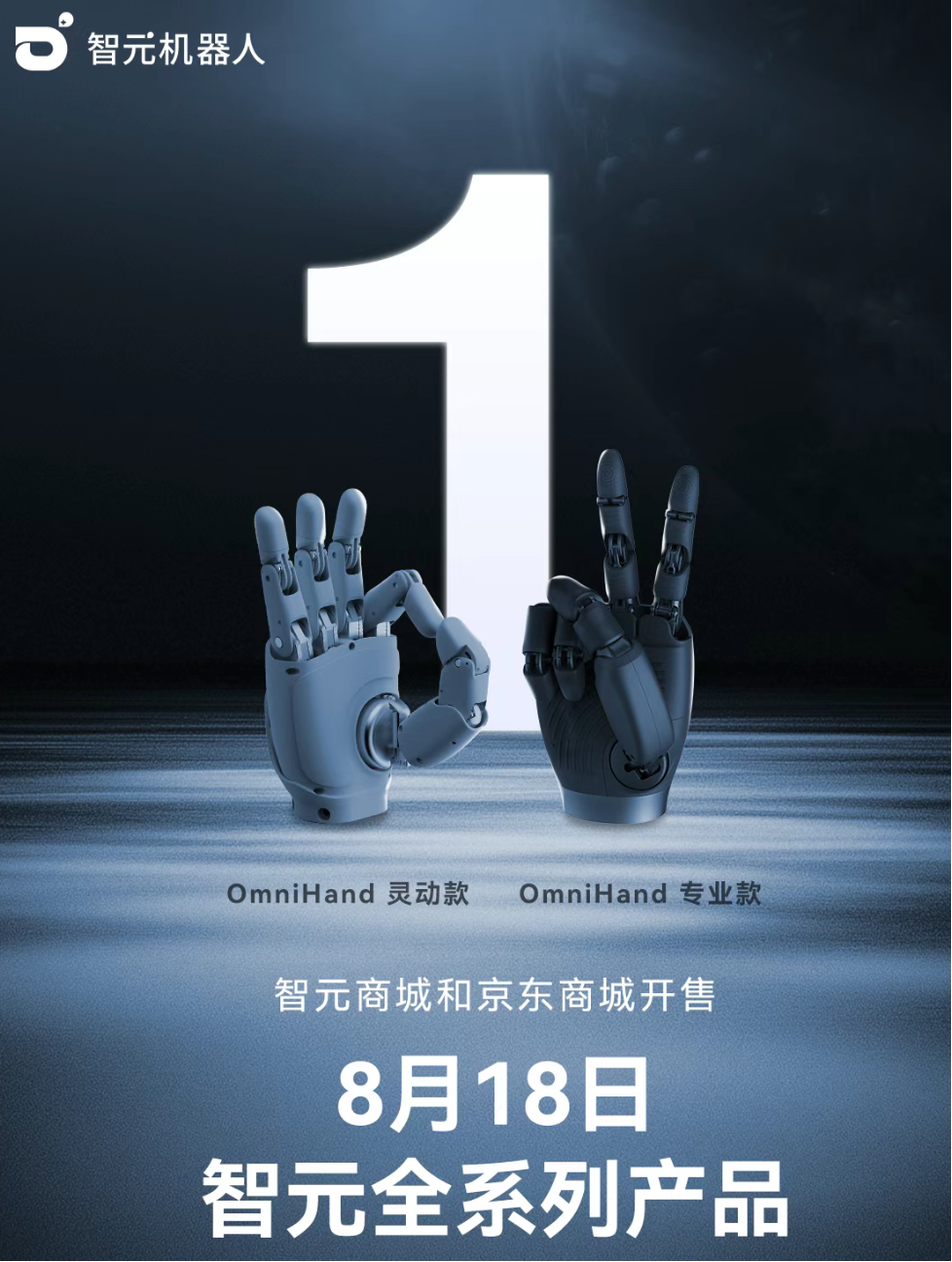 8月17日,智元机器人推出OmniHand 2025系列灵巧手,包含面向交互服务的“灵动款”以及专注专业作业的“专业款”两大产品。其中,灵动款2025灵巧手将于8月18日登陆智元商城及京东(HK9618)商城,指导价1.48万元,8月18日至8月底全球首发限时直降5000元,9800元即可入手;灵动触觉款首发线上价1.48万元(原价1.98万元)。