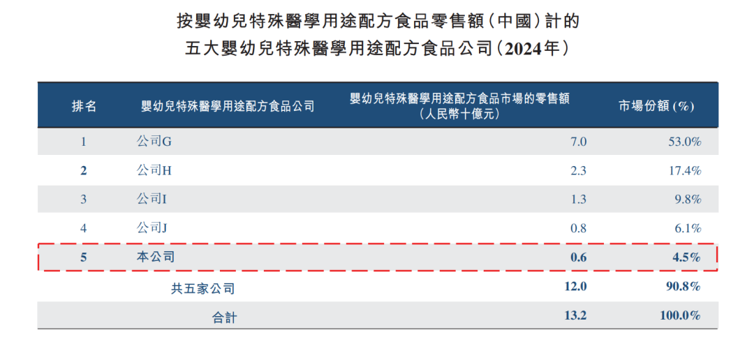 不过,从招股书数据来看,宜品在特医食品婴幼儿市场中所占份额相对较小。2024年,中国市场前五大公司合共占零售额的90.8%,而宜品位居第五,零售额不及第一名营收的1/10。