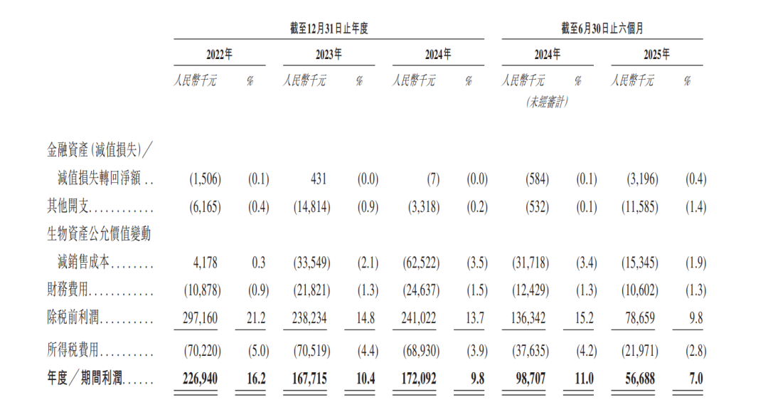 2022年至2025年上半年,宜品的净利率分别为16.2%、10.4%、9.8%、7.0%。