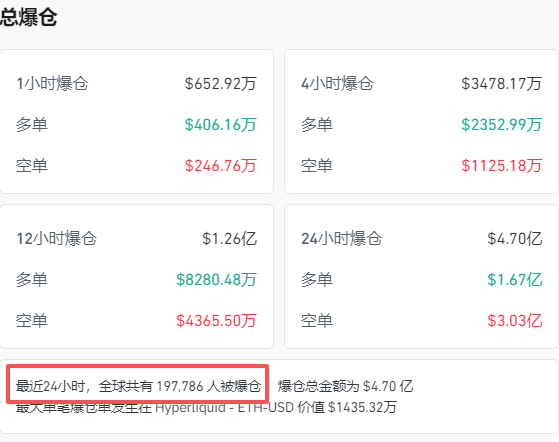 CoinGlass数据显示,最近24小时,加密货币全球共有近20万人爆仓。