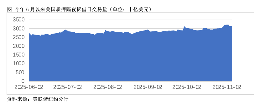 从统计数据看,美国资本市场表现正常。去年1-3季度年股票融资为1885亿美元,今年同期1926亿美元,不及2022年及以前年份的水平,但至少在恢复。债券融资表现较为出彩,今年1-3季度债券融资额是9.59万亿美元,高于去年同期的8.82万亿美元。质押隔夜拆借(SOFR)日交易量从2022年底的1.01万亿美元大幅上升,不应简单地解读为市场流动性出现问题,其背后主要原因是美联储的持续缩表,促使金融机构更多地通过隔夜回购市场来管理流动性。目前金融压力指数也处于低水平。