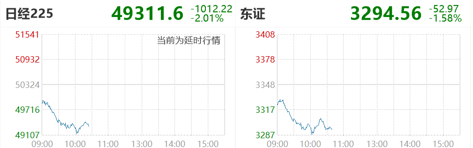 截至9:35左右,日经225(N225)指数跌超1000点,日经225(N225)指数下跌2%,日本东证指数跌超1.5%。