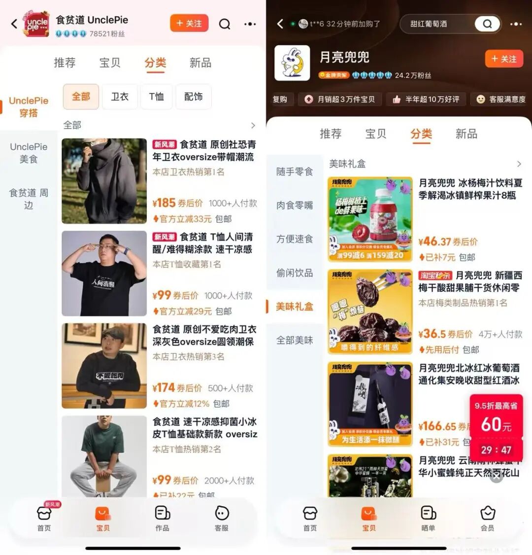 实际上不止是Tim,食贫道(unclepie)、盗月社(月亮兜兜)等多位自媒体创作者当下都在售卖自己的周边和品牌。