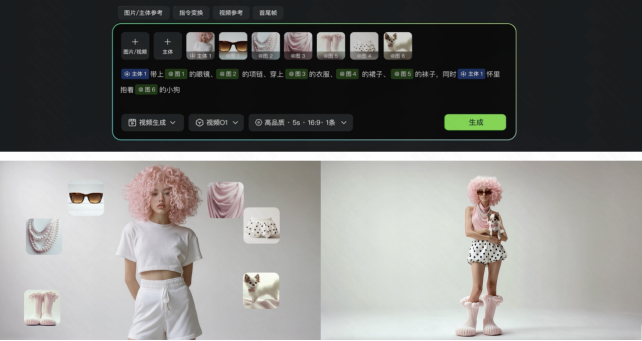 针对传统线下广告实拍成本高、制作周期长的问题,如今用户只需上传商品图、模特图和场景图,配合简单指令描述,即可快速生成多个酷炫的商品展示广告,大幅降低实拍成本。针对模特约拍麻烦、更换背景/服装需要重复拍摄等问题,使用可灵O1,能搭建你的永不落幕的虚拟T台:上传模特+服装实拍图,输入指令,完美还原服饰的质感和细节,批量生产高质量的Lookbook视频。