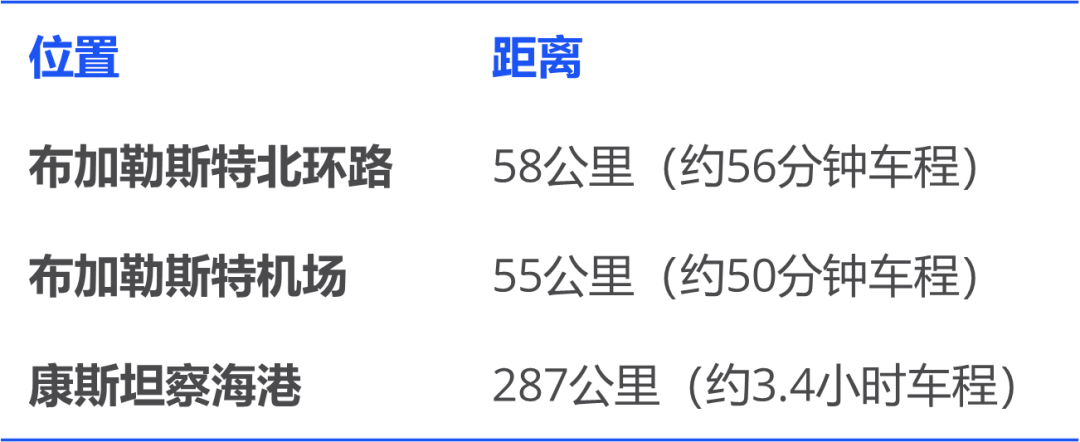 紧邻罗马尼亚首都布加勒斯特,距布加勒斯特机场仅55公里