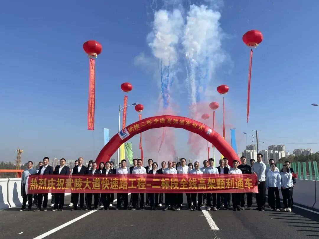 据项目负责人介绍,工程历经三年多的时间,面对拆迁滞后、土方外运困难、施工作业面局促等多重考验,项目部迎难而上,重新倒排进度计划,以“赶工期、保质量、守安全”为原则协调资源、挂图作战开启攻坚模式,确保武陵大道快速路主线高架(含黄金大桥)全线实现全面通车。