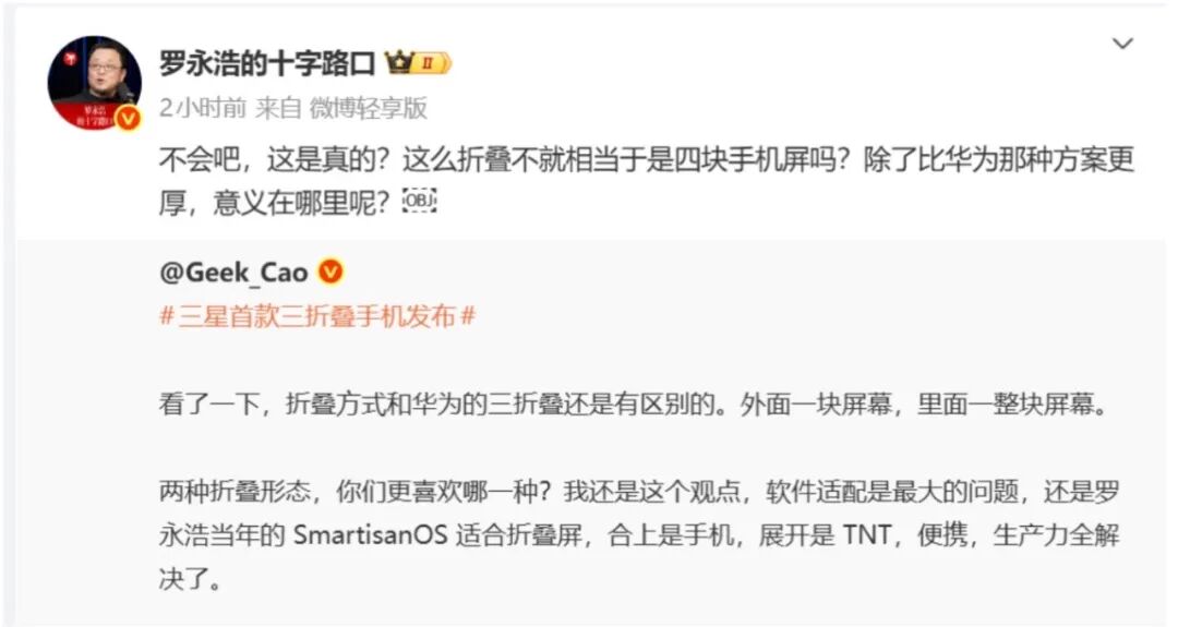 三星推出首款“三折叠”!罗永浩:意义在哪里?