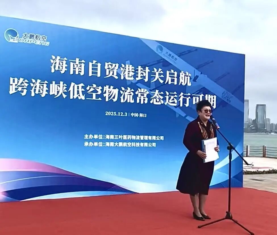 海南省医药行业协会副会长兼秘书长鲁红出席活动并致辞。她在致辞中指出,此次首飞不仅是技术的突破,更是海南医药物流从“陆路通达”迈向“空陆协同”的关键一步。在政策支持与科技创新的双重驱动下,“低空+医药物流”正从愿景走向现实,为急救药品配送、应急物资转运开辟了高效可靠的新通道。她表示,期待这条“空中生命通道”能为海南自贸港医疗健康产业发展注入新动能,为构建更高水平的公共卫生服务体系提供坚实支撑。