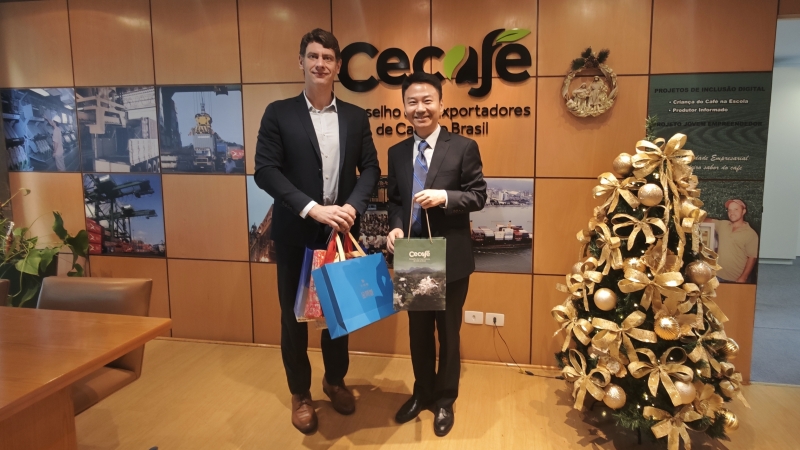 12月2日,驻圣保罗总领馆白春晖参赞会见巴西咖啡出口协会执行会长马尔克斯,就深化两国咖啡领域务实合作进行友好交流。