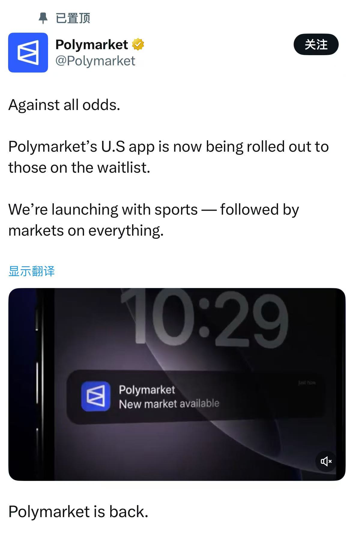 当地时间12月3日,全球最大预测市场平台Polymarket宣布,在经历了近四年的禁令后,已经重返美国市场。Polymarket表示,其美国应用程序现在正逐步向候补名单上的用户推出。平台计划首先推出体育板块,随后逐步涵盖所有市场板块,实现“万物”皆可交易。