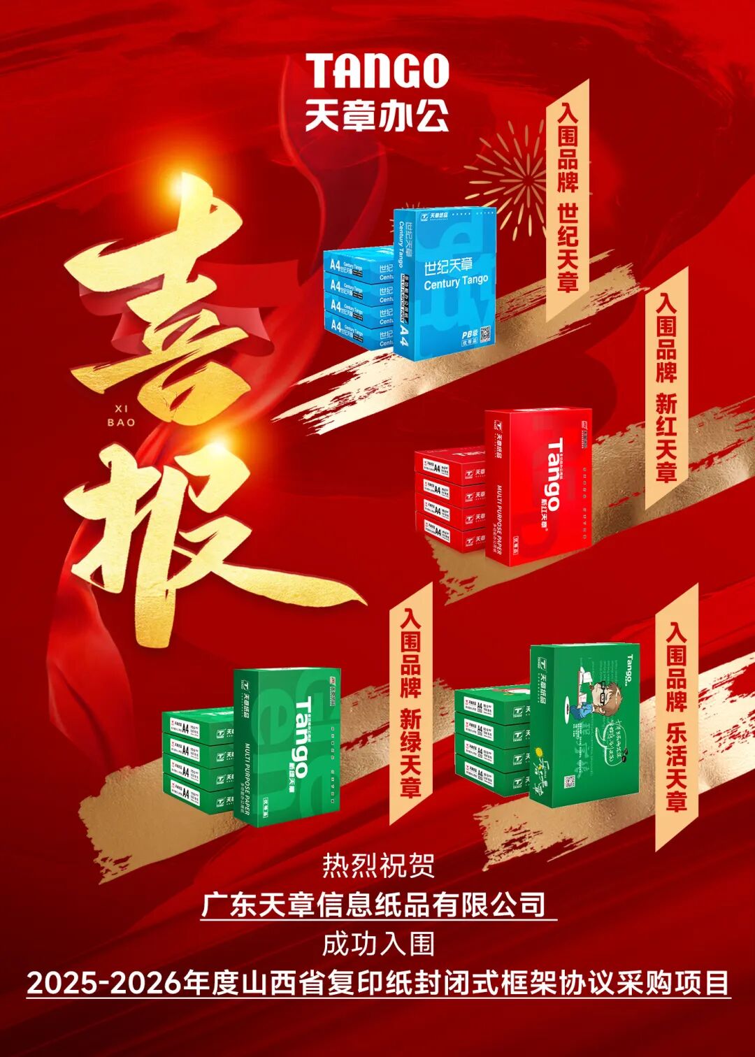 天章纸品成功入围2025-2026年度山西省复印纸封闭式框架协议采项目