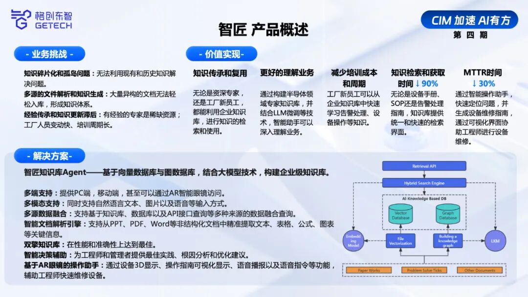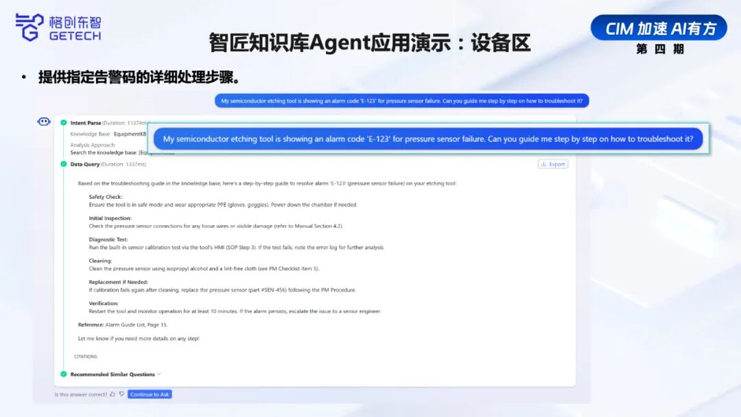 值得关注的是,智匠Agent并非孤立存在,而是深度融入格创东智的CIM AI Foundation框架之中。它与章鱼AI Agent平台协同,可构建专注于设备知识管理的专业Agent;与GT Insights联动,为良率分析提供工艺知识的支撑;与AI FDC结合,为故障预测和维护提供知识依据。智匠不仅是一个知识检索工具,更成为了整个智能制造系统的"知识大脑"。它让知识在适当的时间和方式,主动推送给需要的人,实现从"人找知识"到"知识找人"的转变。