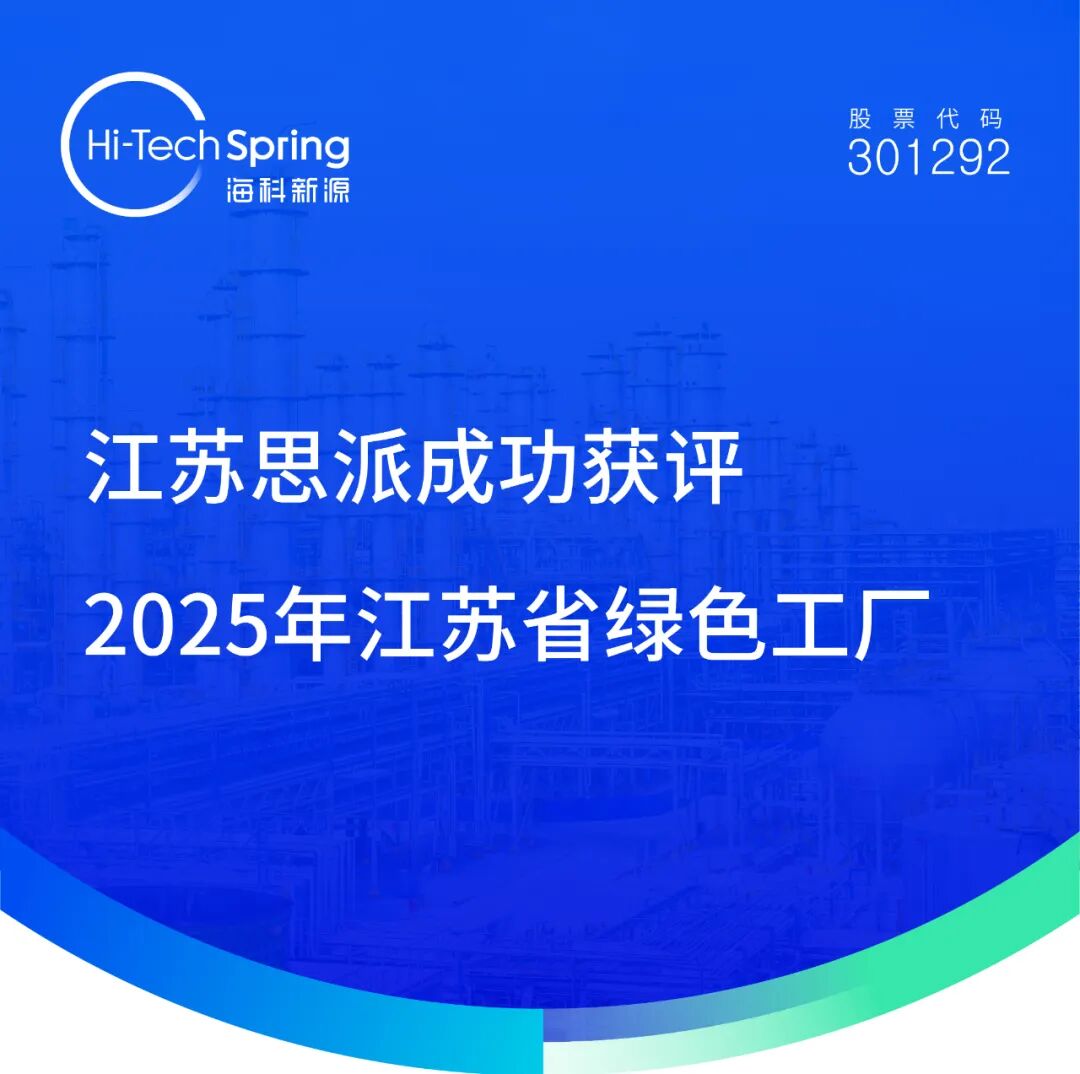 江苏思派公司成功获评江苏省绿色工厂 ,助力海科新源高质量发展