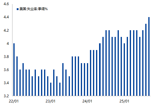 三季度以来美国失业率逐步上升,截至9月已升至4.4%,创2021年10月以来新高。其他相关数据也可以作为印证,美国11月ADP就业人数减少3.2万人,创2023年3月以来最大降幅。预计随着美国劳动力市场的进一步恶化,市场对美联储降息的预期将强化。