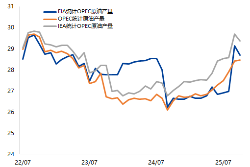 从不同机构统计的OPEC产量情况看,差异较大,EIA和IEA对OPEC产量的统计通常比OPEC自身所统计的要高,此外其他机构所估计的数据也较高,可能暗示OPEC剩余产能低于预期。