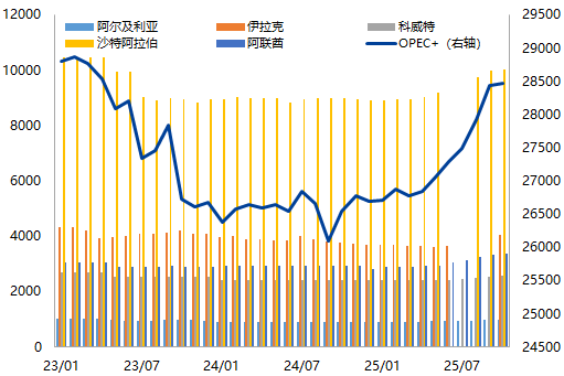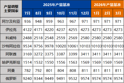 图表3:2025年OPEC产量基准加速回补(千桶/天)