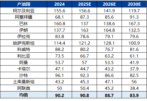 图表9:OPEC主要产油国盈亏平衡油价(美元/桶)