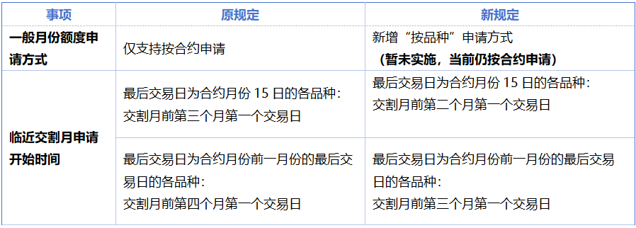 允许全年任一交易日提交申请,获批额度可用于该品种所有已上市合约,有效期自批准日起至次年6月30日。