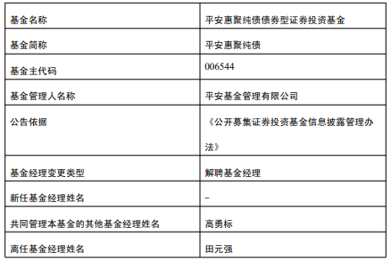 中国经济网北京12月5日讯昨日,平安基金公告,田元强离任平安惠聚纯债。