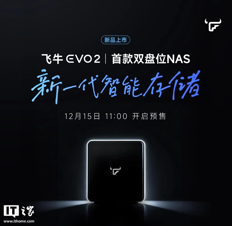 飞牛首款自有 NAS 硬件:双盘位 Evo 2 官宣 12 月 15 日预售