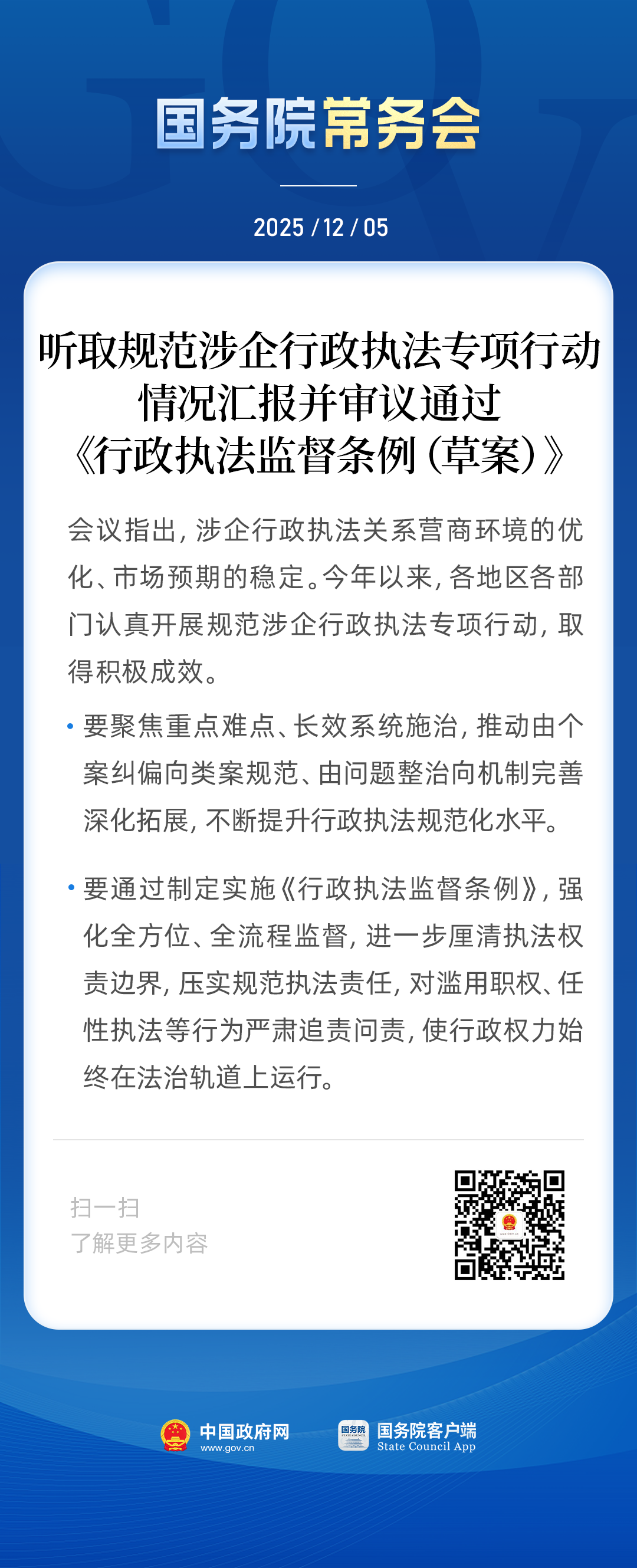 国务院常务会审议通过《行政执法监督条例(草案)》