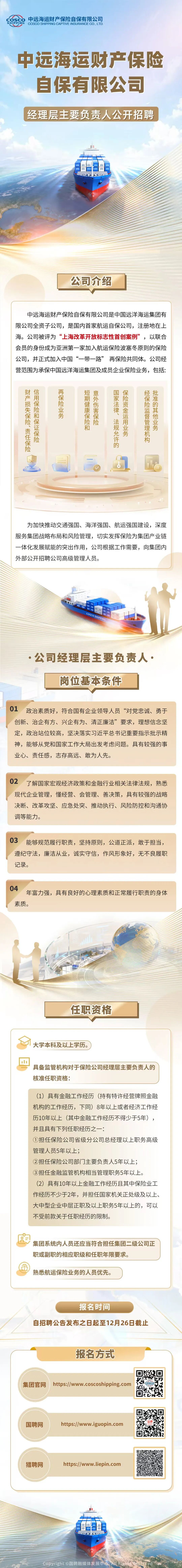 中远海运财产保险自保有限公司经理层主要负责人公开招聘