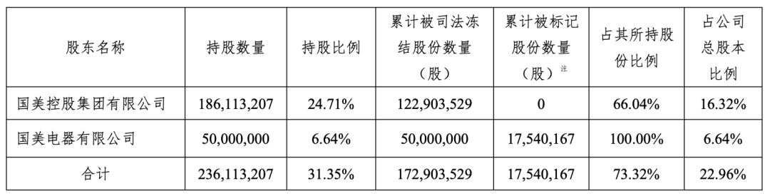 截至2025年12月4日,国美电器累计被司法冻结股份数量为5000万股,占其所持股份的100%。