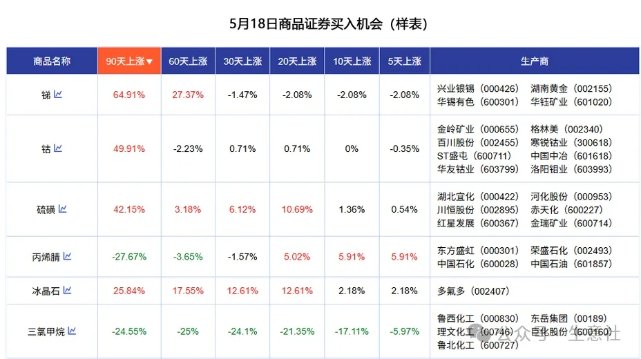 环比下降的商品共130种,集中在化工(共83种)和有色(共10种),跌幅在5%以上的商品主要集中在化工板块;跌幅前3的商品分别为D80(-9.39%)、间硝基甲苯(-6.82%)、三乙醇胺硼酸酯(-6.82%)。