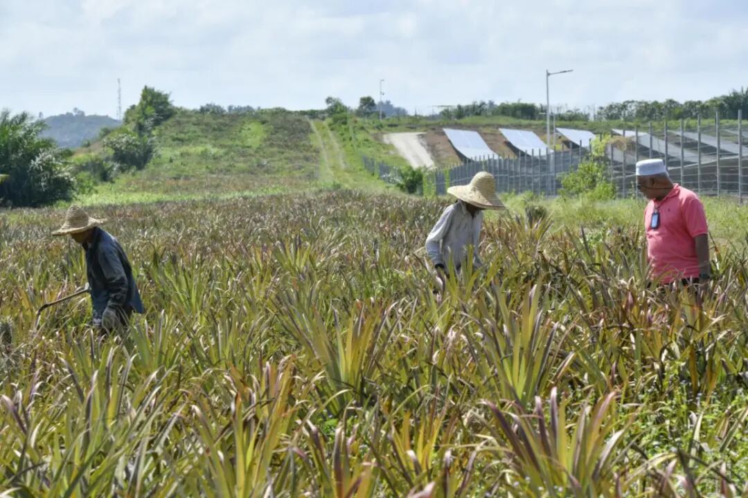 电站致力融入周边社区,为帮助当地农民增收,采用“农光互补”模式,将吉打电站周围40英亩的缓冲区,拨给周边农民种植菠萝和其他农作物,收成后在槟城和亚罗士打等邻近乡镇销售。每个种植周期可带来6万林吉特收益,让光伏板下长出“致富果”。