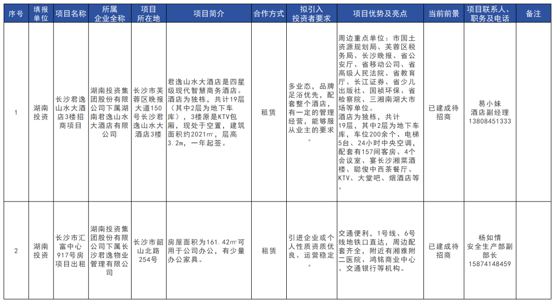 近期,长沙市国资委发布《2025年长沙市国资国企产权招商项目推介手册》,集中推出一批具有重要战略价值与发展潜力的优质资产与项目。其中,湖南投资(000548)集团旗下浏阳财富新城写字楼、湖南投资大厦、君逸康年大酒店写字楼、君逸财富大酒店等多个优质项目作为推介重点,面向全国发布。