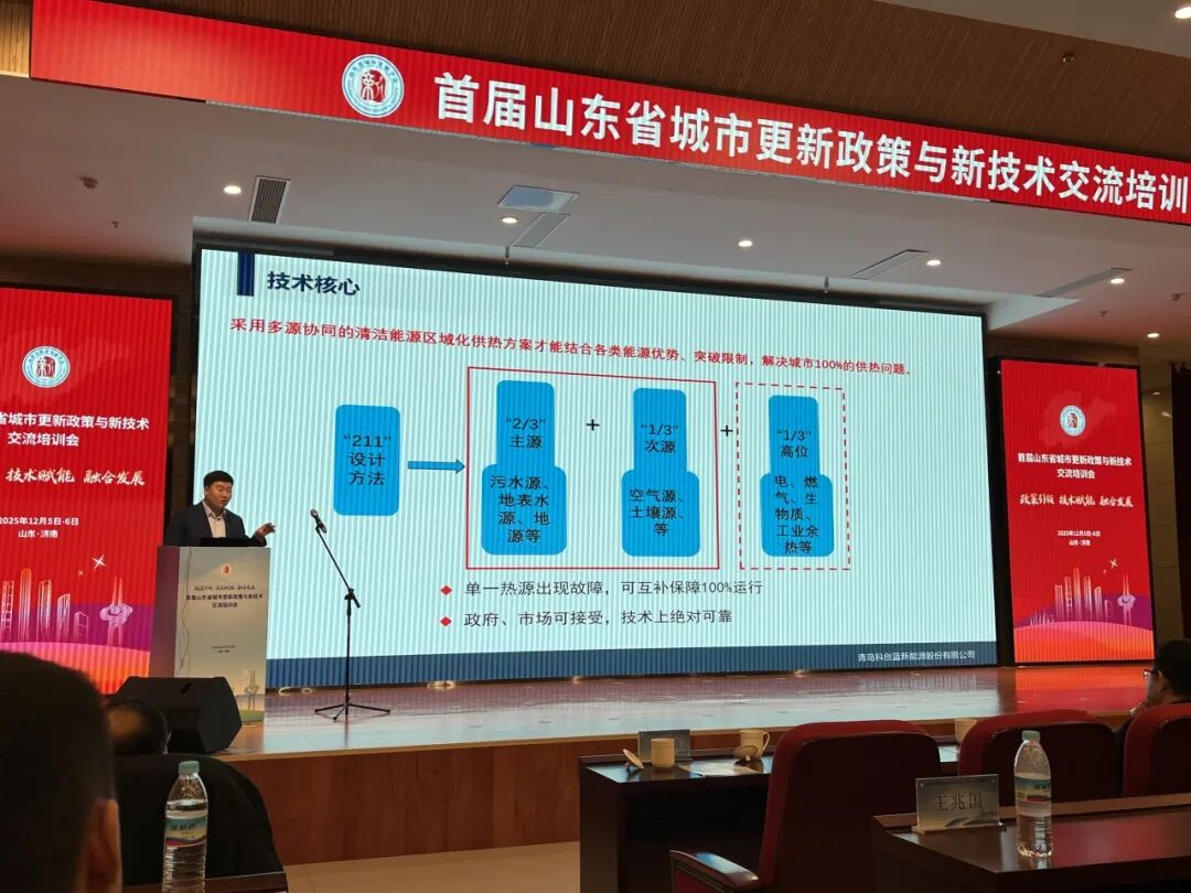 12月5日至6日,首届山东省城市更新政策与新技术交流培训会在济南召开。大会由省城市更新学会主办,以“政策引领技术赋能融合发展”为主题。青岛科创蓝新能源股份有限公司受邀出席,并围绕环境能源区域化供热作主题分享。