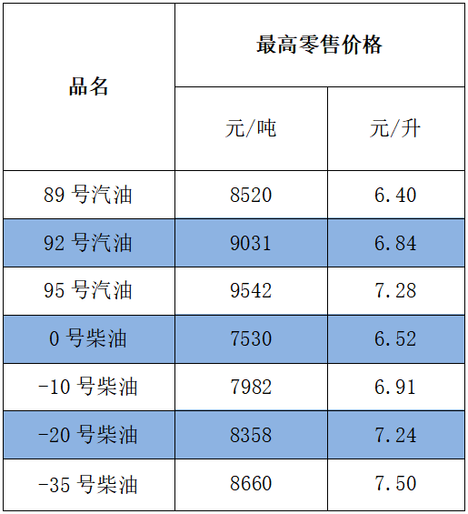 92号汽油由每升6.89元调整为6.84元,降低0.05元;