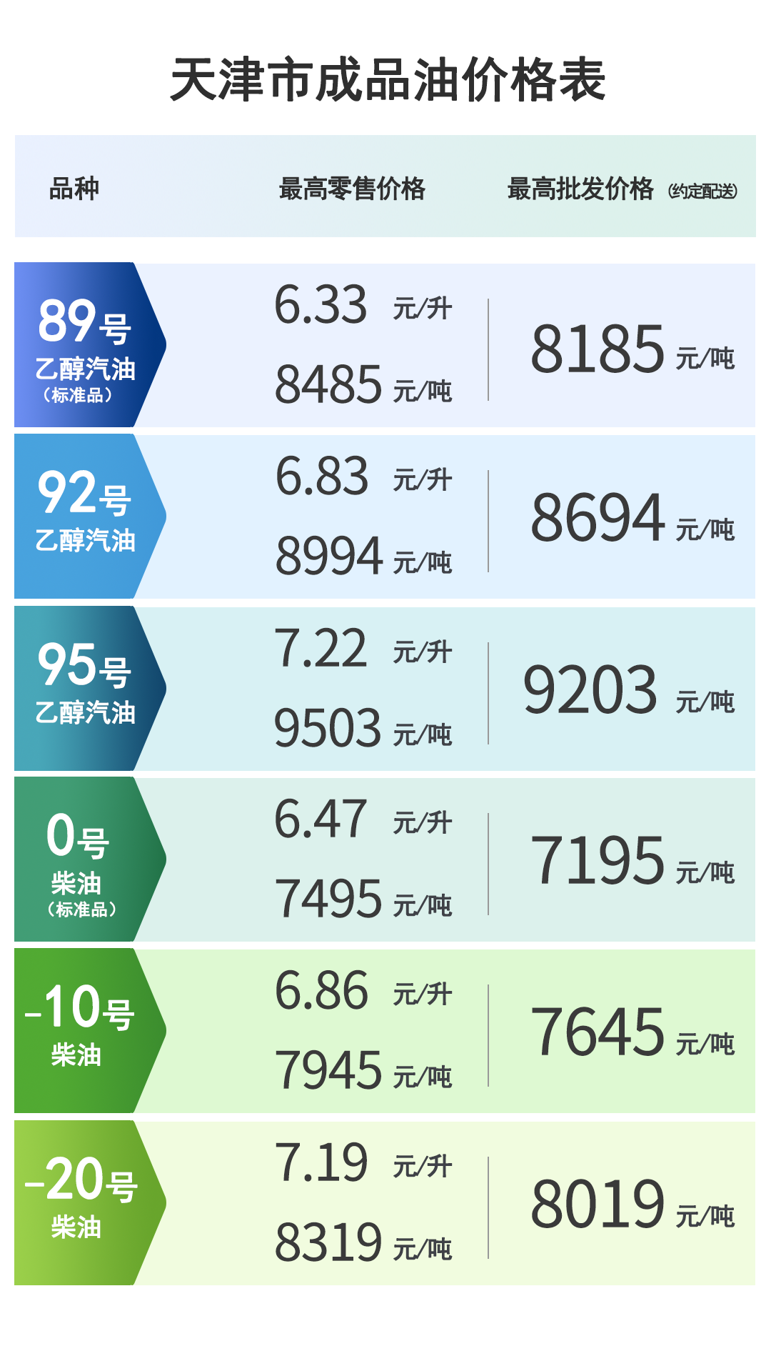 根据国家发展改革委公布的成品油价格调价信息,现将我市调整后的成品油最高零售、批发价格公布如下,自2025年12月8日24时起执行。