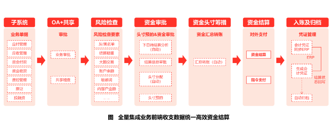 通过司库系统实行集团统一结算,覆盖合同起草、签订、管理、执行、司库结算、归档全生命周期,将结算风险管控前置。同一资金池内成员单位结算采用无现金流结算,直接划转内部户余额,减少资金冗余流转,降低财务费用。