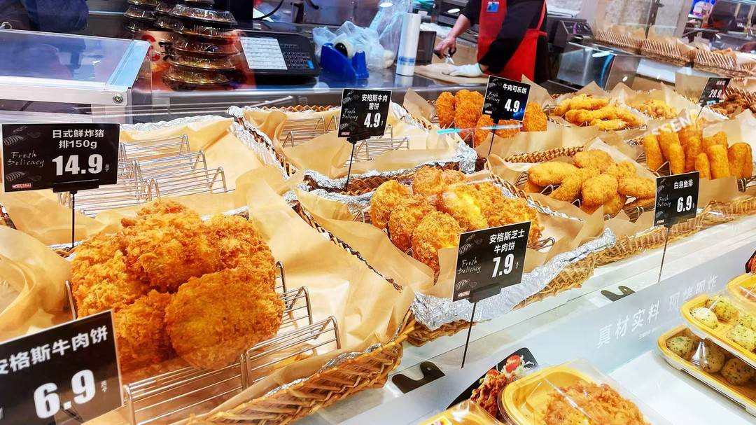 对于追求效率的都市人,店内新导入的潮汕牛肉及配套锅物,将地道风味转化为分分钟可得的半成品;现场制作的汉堡、披萨,则提供了不亚于专业餐厅的即时选择。对于注重仪式感的家庭时刻,海鲜区完成结构性升级,波士顿龙虾、小青龙等硬核食材的引入,让家宴变得轻松而体面。对于每日必需的日常烹饪,200多个品类的熟食区构成了核心。这里既有亲切的卤菜、拌菜、北京烤鸭,也有新潮的炸物、烤制品。它像一个永不疲倦的“家庭厨房后援”,无论是想偷个懒,还是为餐桌加个菜,都能在这里找到确切的解决方案。