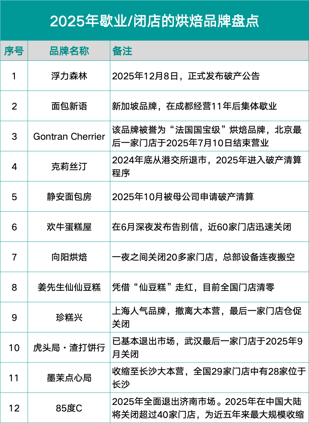 浮力森林的破产并非偶然,它像一块被推倒的多米诺骨牌,揭开了2025年整个烘焙行业残酷洗牌的序幕。一场不分国界、不论资历的“寒潮”,正让整个行业从过去的增量分享,急速转向存量甚至减量的残酷搏杀。