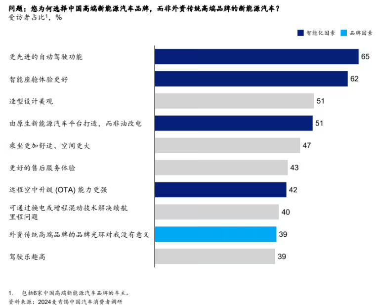 其次,联发科坚定践行“AI 定义座舱”理念,构建端侧生成式 AI 的护城河。根据麦肯锡调查对 2024 年智能汽车市场用户调查的数据,绝大多数中国消费者将“智能座舱体验”视为购车关键因素。联发科敏锐地捕捉到了“AI 大模型上车”的趋势。不同于纯粹依赖云端的 AI,联发科强调端侧能力。