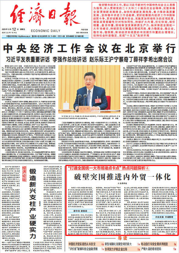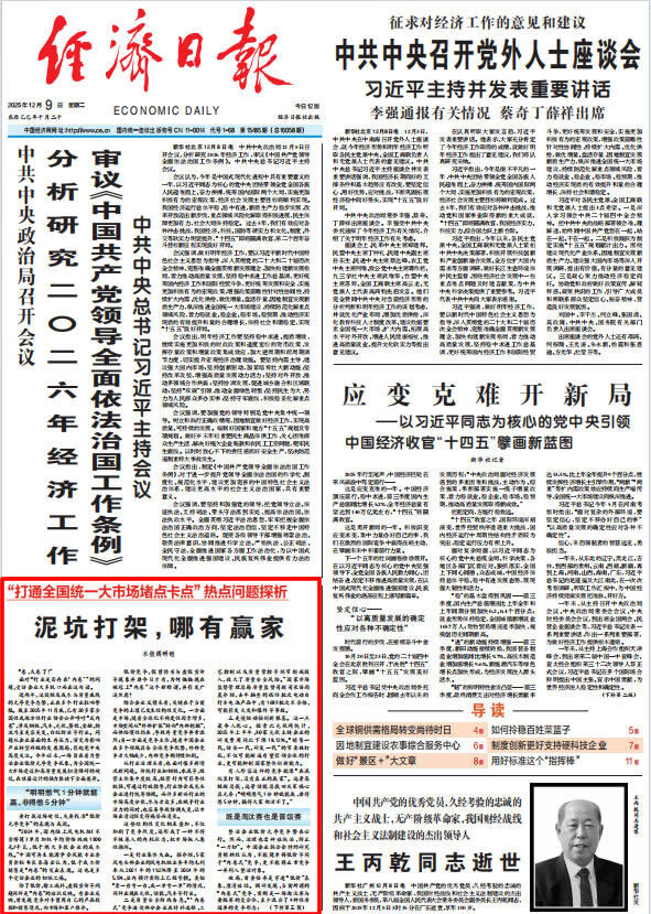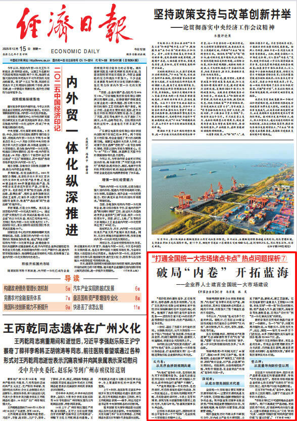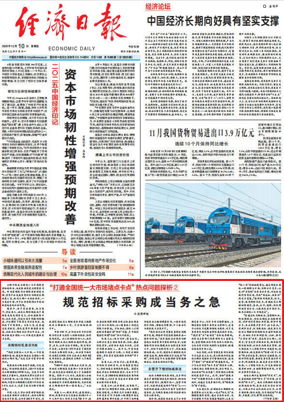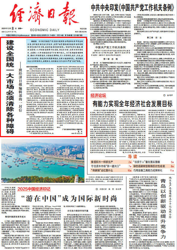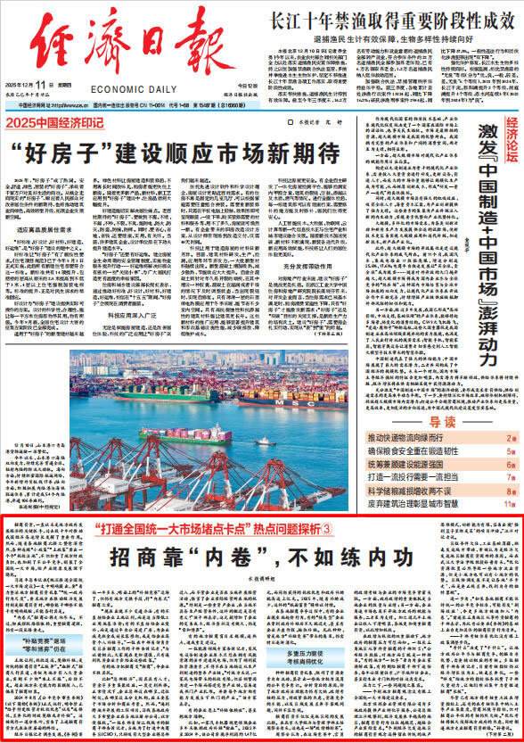 经济日报头版连发重磅文章 聚焦全国统一大市场堵点卡点