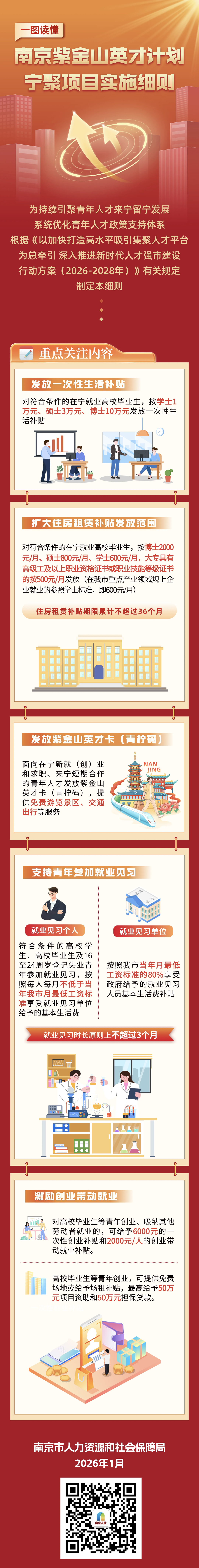 扬子晚报网1月4日讯(通讯员高启航记者闫春旭)新年伊始,南京人才政策2.0正式发布。其中,台紫金山英才计划宁聚项目作为汇聚青年人才的创新政策,以真金白银和暖心服务向全球青年人才发出“邀请函”。记者从南京市人社局获悉,"宁聚项目"包括生活补贴、租房补贴、创业补贴和紫金山英才卡(青柠码)等政策,其中高校毕业生一次性生活补贴最高可达10万元,大专学历技能人才首次纳入租房补贴范围。
