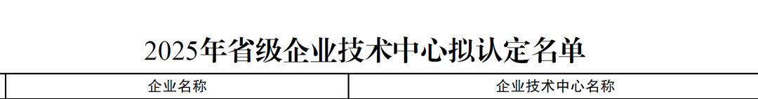 入围省级企业技术中心公示名单