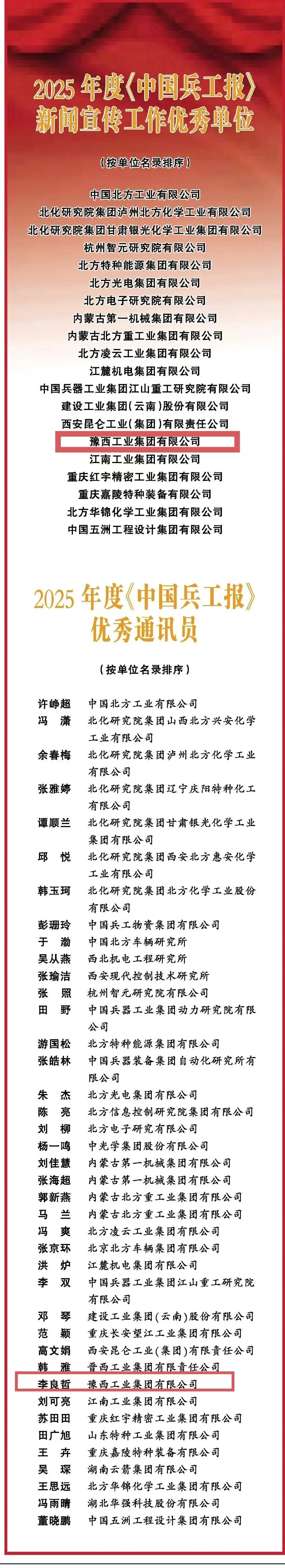 喜报!豫西集团荣获2025年《中国兵工报》新闻宣传工作优秀单位