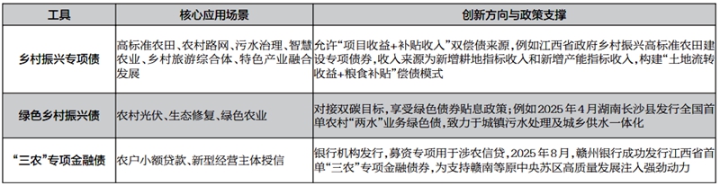 债券类工具以其期限灵活、成本可控的优势,成为乡村振兴中长期项目融资的主力选择,已形成包括乡村振兴专项债、绿色乡村振兴债、三农专项金融债等在内的产品体系。