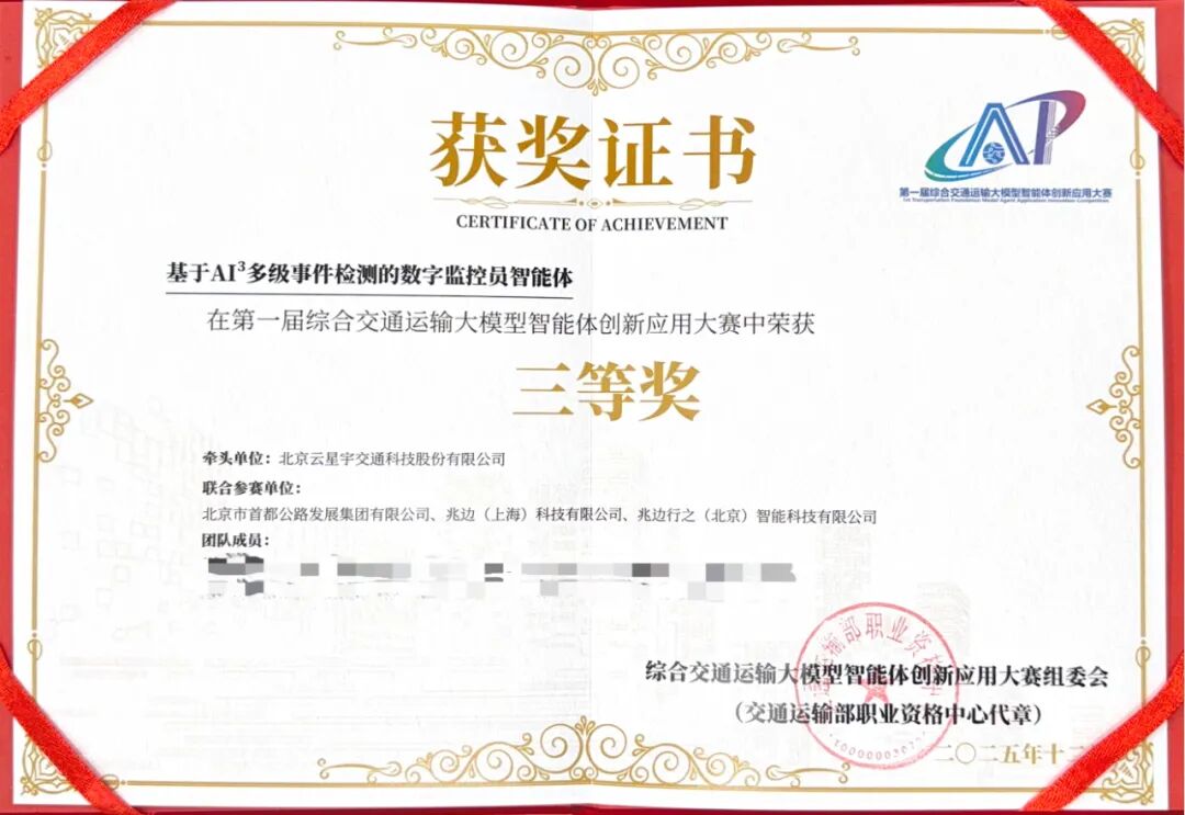 喜报!云星宇联合集团公司斩获首届综合交通运输大模型大赛全国三等奖