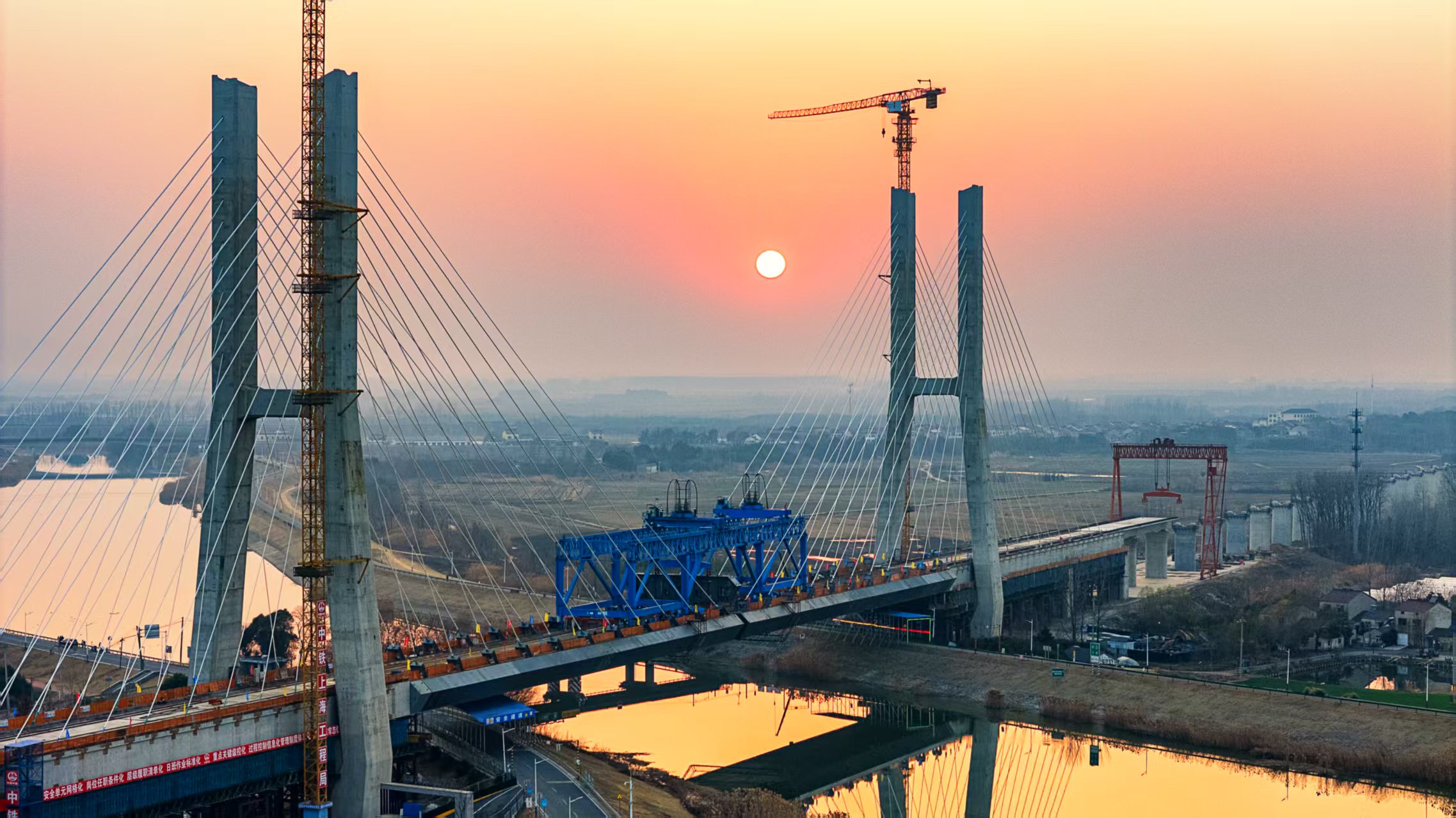最新进展!沪宁合高铁南京特大桥跨滁河斜拉桥合龙