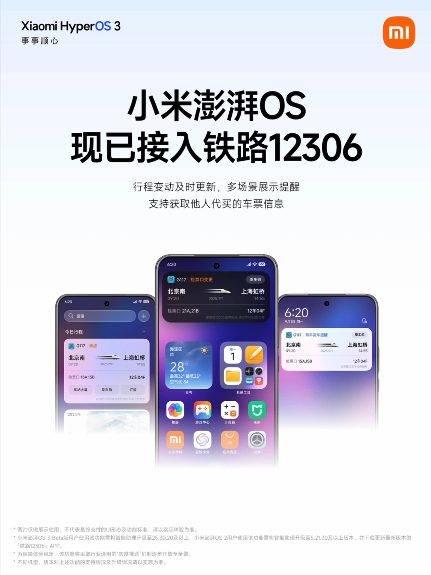 小米澎湃 OS 系统后天起关闭“国铁吉讯”绑定入口,用户需换绑“铁路 12306”