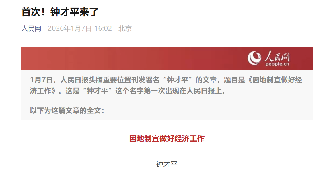 “钟才平”文章为何在2026年开年推出?