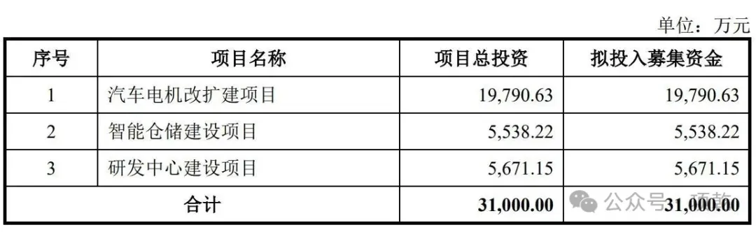 此次发行,睿信电器拟发行股票数量不超过2000万股,募集资金3.1亿元,用于汽车电机改扩建项目、智能仓储建设项目、和研发中心建设项目。